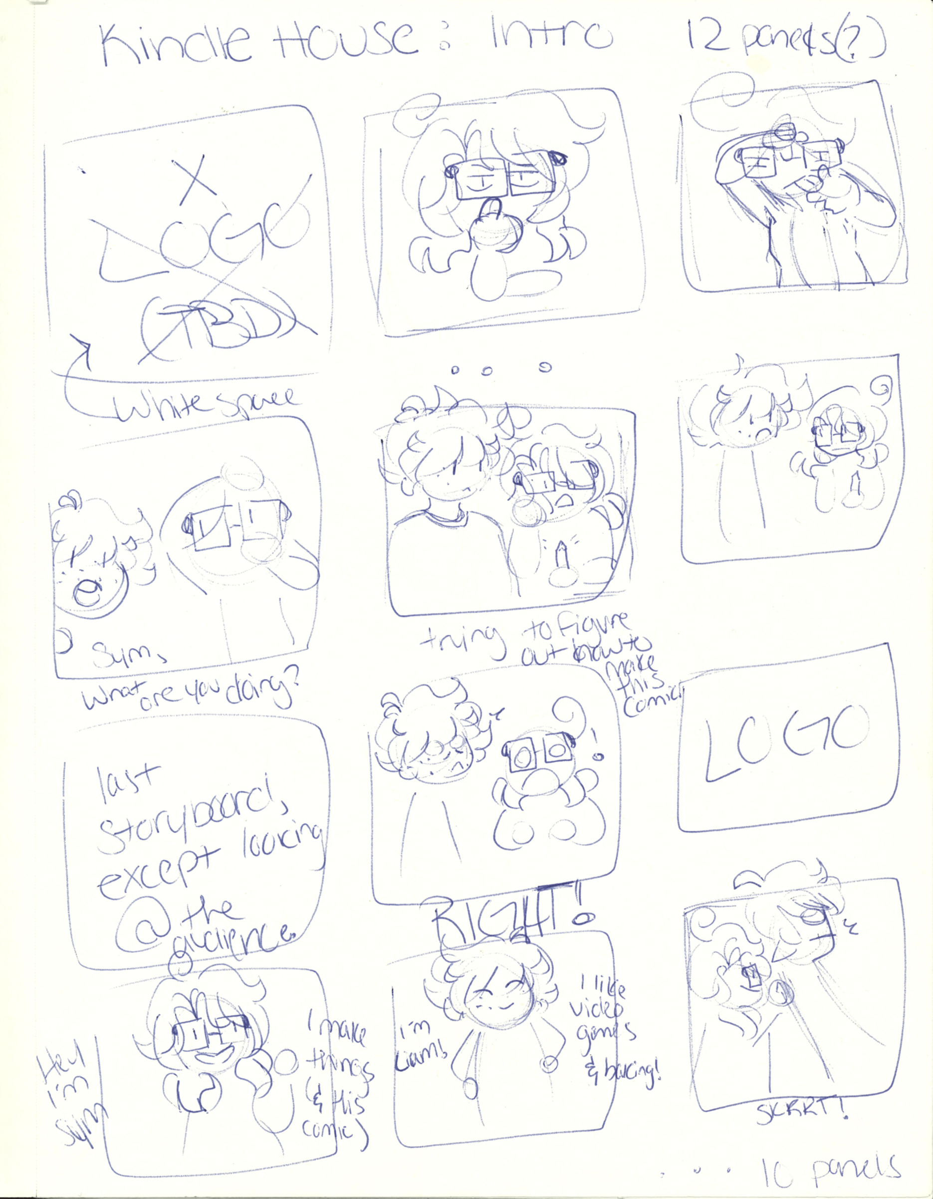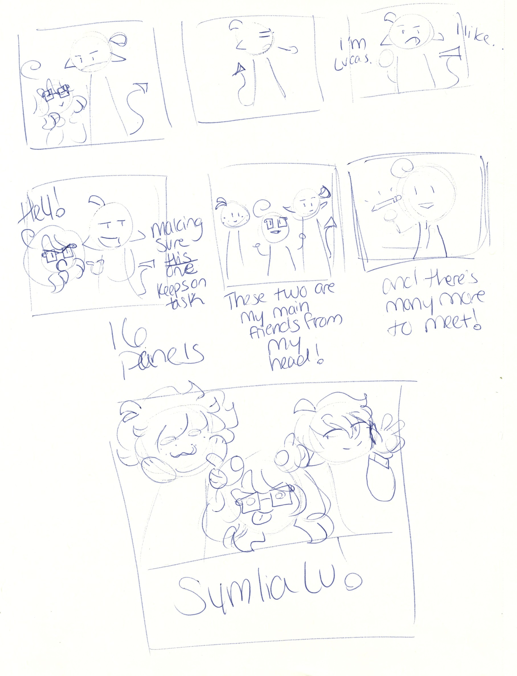 So........ I have no idea what the plan was for this episode. What I’m sharing is only one page of four, and they have vague sketches, or hardly anything on them aside from the panels. I cannot for the life of me find the outline or script, and while I do remember drawing some of this, I have no memory of how the conversation was going to play out. It seeeeems like this is an instance of ‘I'm trying to figure out how to make the comic!’ theme. Though, if I ever find out, I’ll update this page! It’s very interesting how it seems to be the only comic out of all of these that’s just straight up lost to time! Kinda wild…